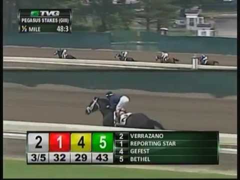 Verrazano, o potro de 3 anos que participou no Kentucky Derby deste ano sem conseguir chegar entre os três primeiros, venceu o Pegasus Stakes (gr. III) por 9 1/4 comprimentos em 1:41.72. Nada mau o seu regresso às pistas!